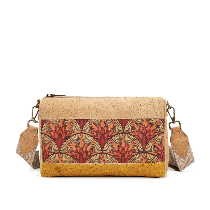 Bolso bandolera de corcho natural para mujer: un accesorio elegante y ecológico elaborado con material de corcho sostenible con un inteligente diseño de patchwork. Este accesorio único abraza el encanto de la naturaleza y es perfecto para las mujeres modernas y conscientes.